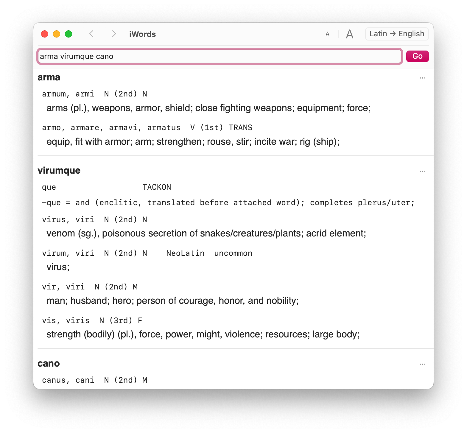 - 📖Built on Words by William Whitaker, a venerable Latin dictionary and parsing program